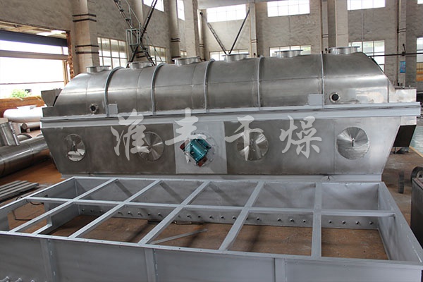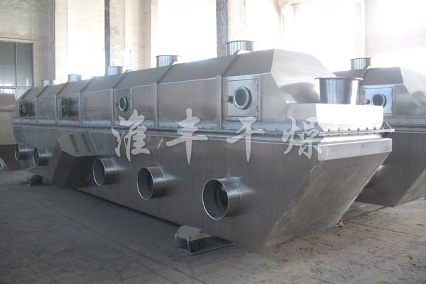 產品概述:物料自進料口進入機內,在振動力作用下,物料沿水平流化床拋擲,向前連續運動,熱風向上穿過流化床同濕物料換熱后,濕空氣經旋風分離器除塵后由排風口排出,干燥物料由排料口排出。